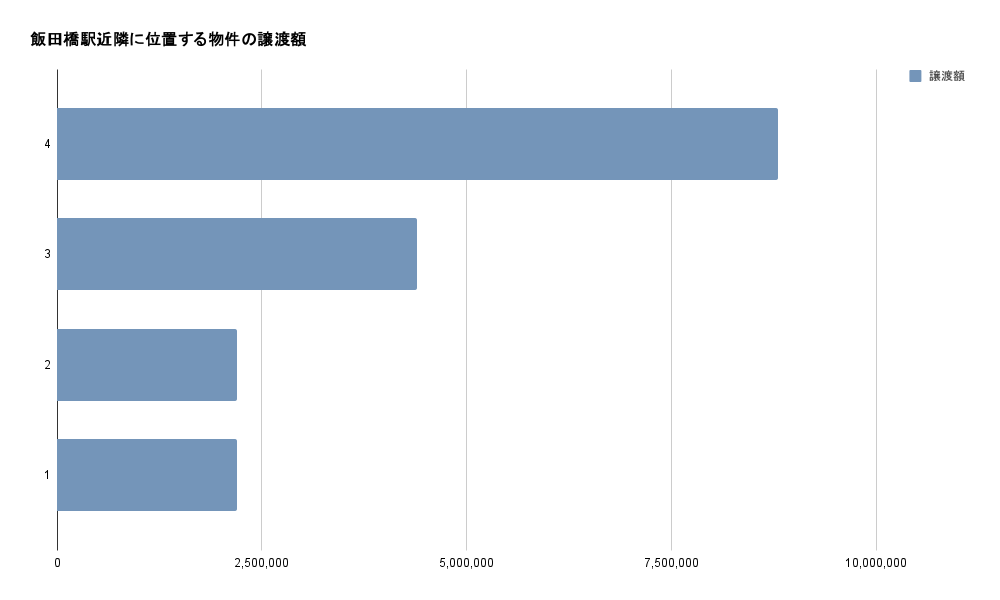 飯田橋駅近隣に位置する物件の平均譲渡額はこんな感じじゃ!