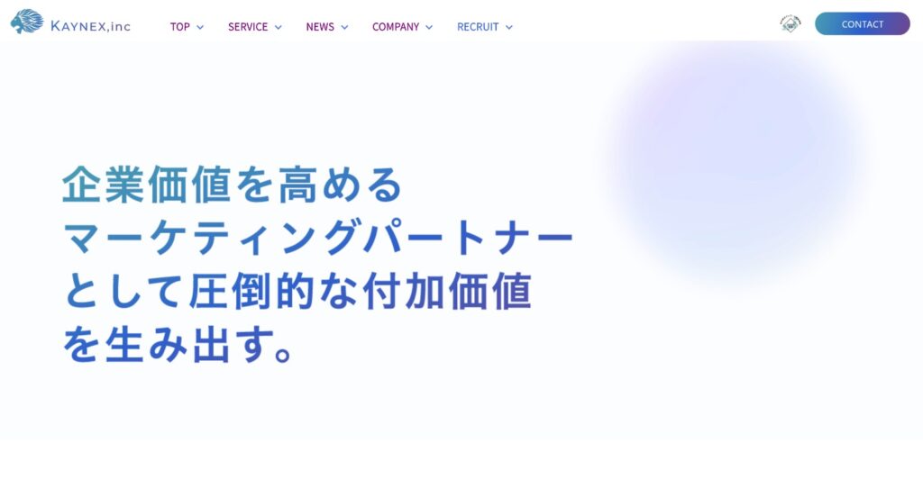 「株式会社ケイネックス」は、大阪・東京の2拠点を構えるデジタルマーケティング・クリエイティブ支援会社です。「企業価値を高めるマーケティングパートナーとして圧倒的な付加価値を生み出す。」を掲げ、クリエイティブ・マーケティング・テクノロジーを掛け合わせ、時代の変化に応じた課題解決を支援しています。主な事業は、