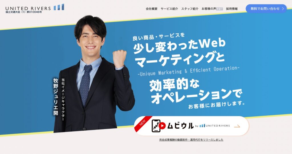 開業前後の集客に不安を感じている飲食店オーナー様には、「株式会社ユナイテッドリバーズ」のWEBマーケティング代行サービスがおすすめです。最大の特長は完全成果報酬で依頼できる点で、初期費用を抑えながらプロの集客サポートを受けられます。