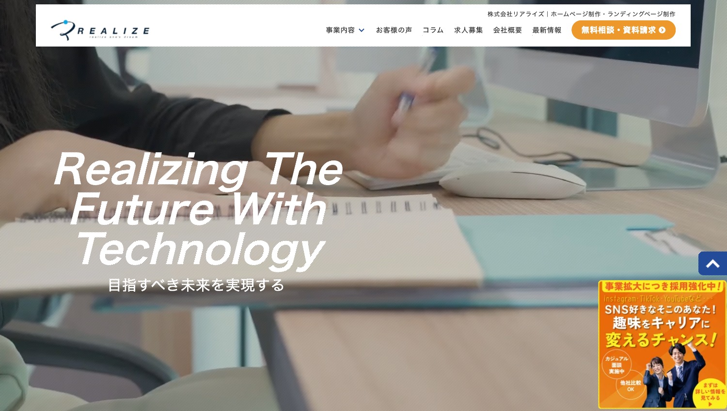 株式会社リアライズは、ホームページ制作MEO対策を始めとしたWebマーケティング事業を行う会社です。