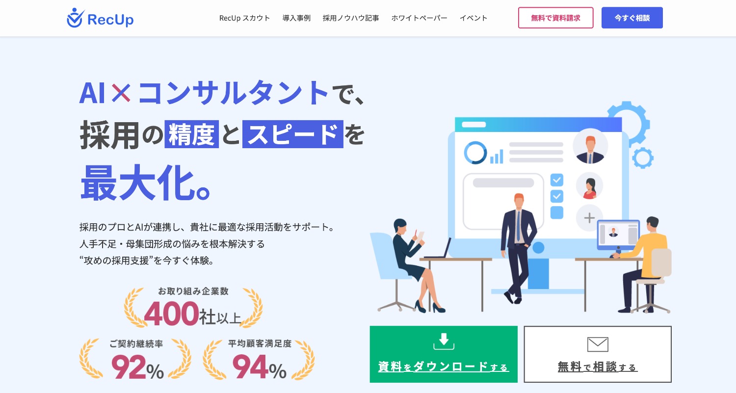 AI技術を活用したマッチングシステムを導入している業者もあり、候補者の適性を客観的に分析した上で紹介してくれるため、採用の精度が向上します。