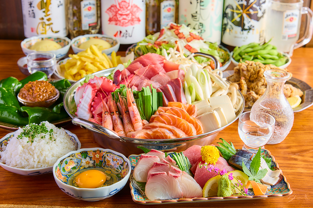 新鮮な刺身盛など、満足度抜群の料理を2時間の飲み放題付きで楽しめるおすすめコースを始め、豪華食材を贅沢に使用した鍋をご堪能ください。贅沢なひとときをお楽しみください!