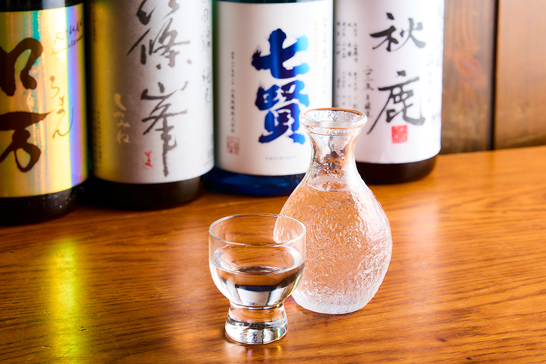 落ち着いた和の空間で、名古屋にいながら日本全国の銘酒を“飲み比べ”できるのが魅力。刺身盛りや焼き魚、手羽先、肉刺しなど日本酒の旨さを引き立てる肴も充実しています。